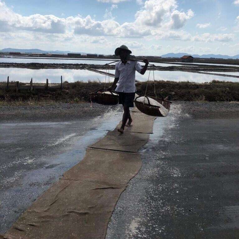 収穫したままの青い実(写真2枚目)を、カンボジア伝統の塩田(写真4枚目)で作られた塩で塩漬けにしたもの。一粒一粒を手で厳選しているので丸の形が美しいです。